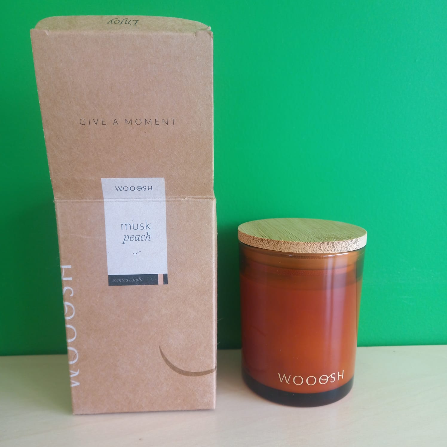 Een warm gebaar in een glazen potje. Deze stijlvolle geurkaars verspreidt de zachte, sensuele geur van Musk Peach – een combinatie van fluweelzachte perzik en warme muskus. Perfect om even helemaal tot rust te komen.