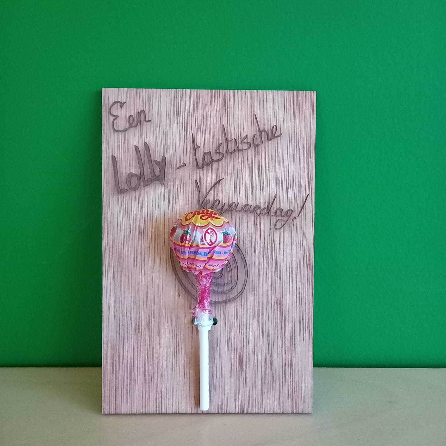 De Lollytastische verjaardagskaart wordt zonder lolly geleverd.