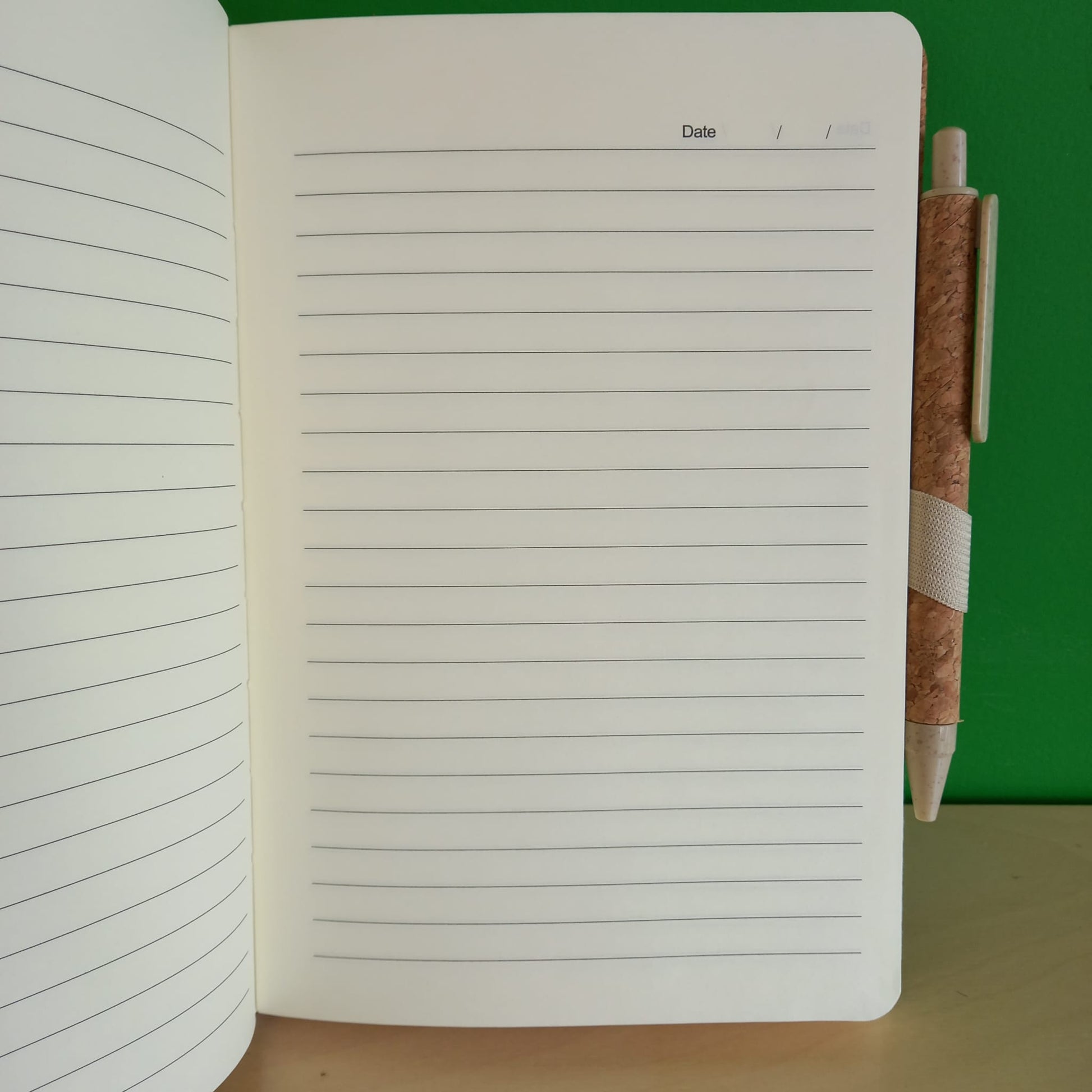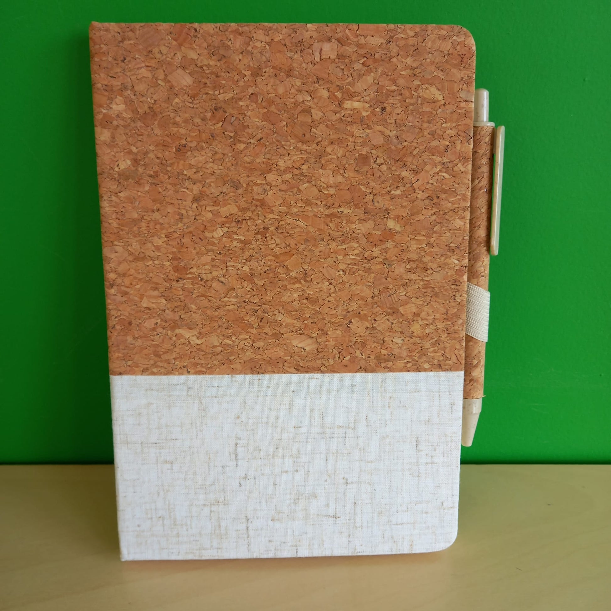 Kaft vervaardigd uit kurk en linnen. Pen uit tarwesto inbegrepen.