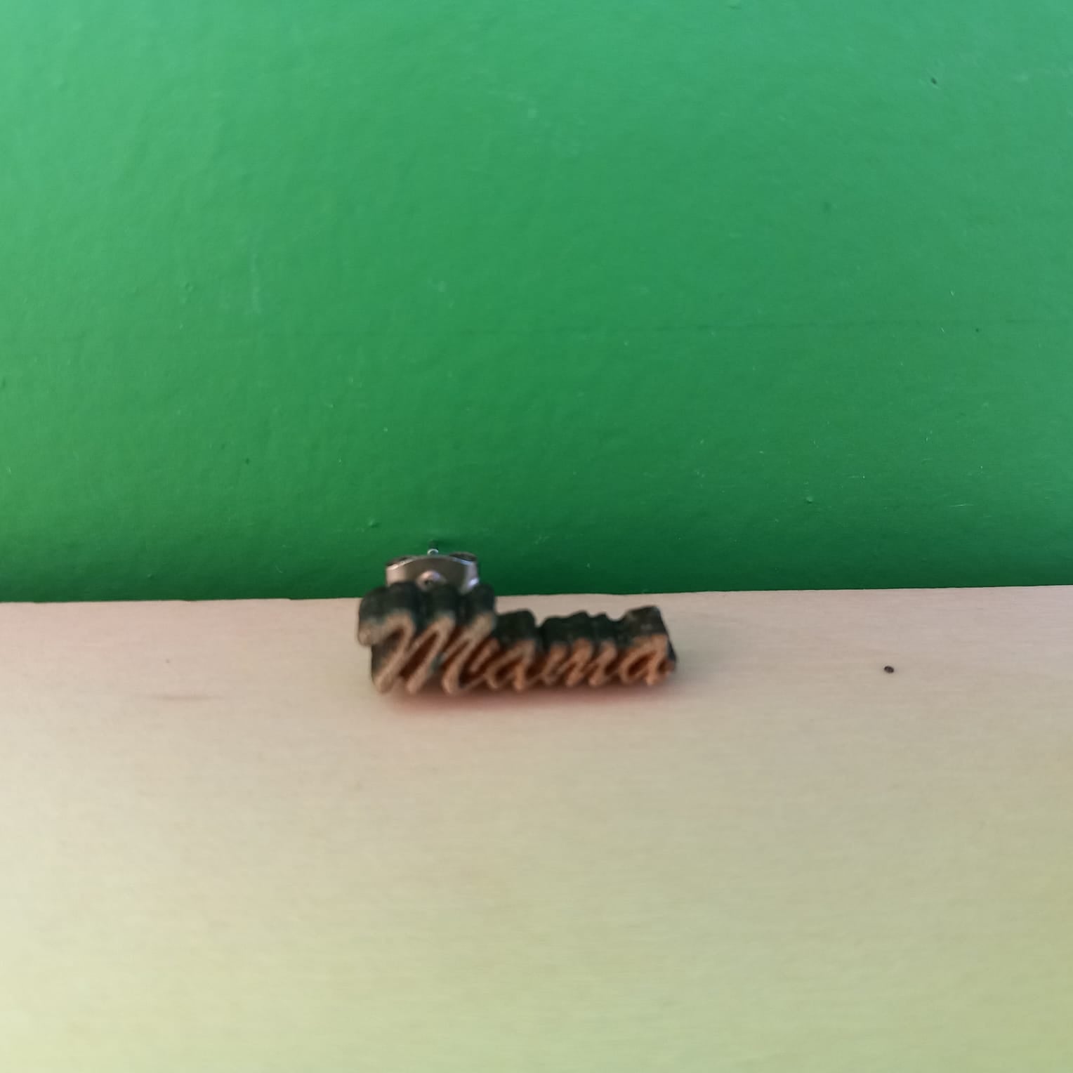 Deze oorpiercing (earclimber) met de vermelding 'mama' hangt aan de oorrand en niet aan de oorlel. De piercing gaat opwaarts en accentueert meer van je oor. Ze klimmen als het ware langs je oor.