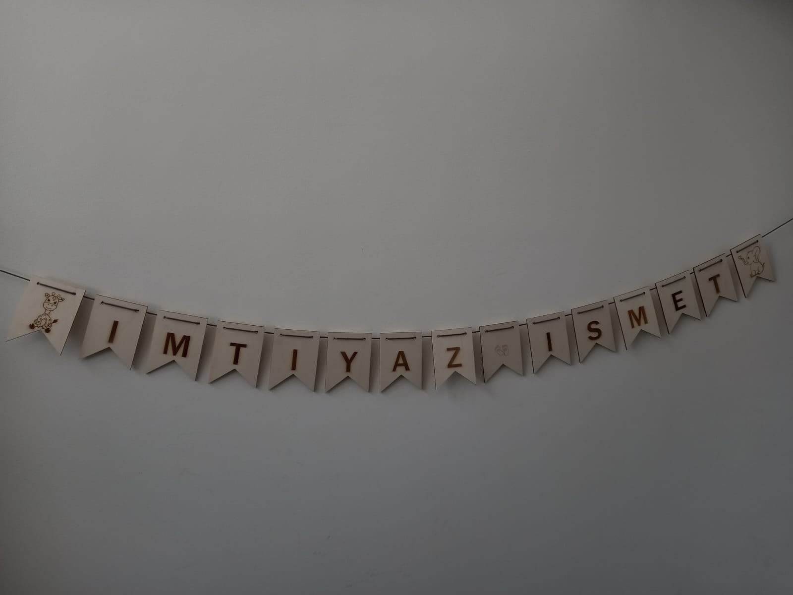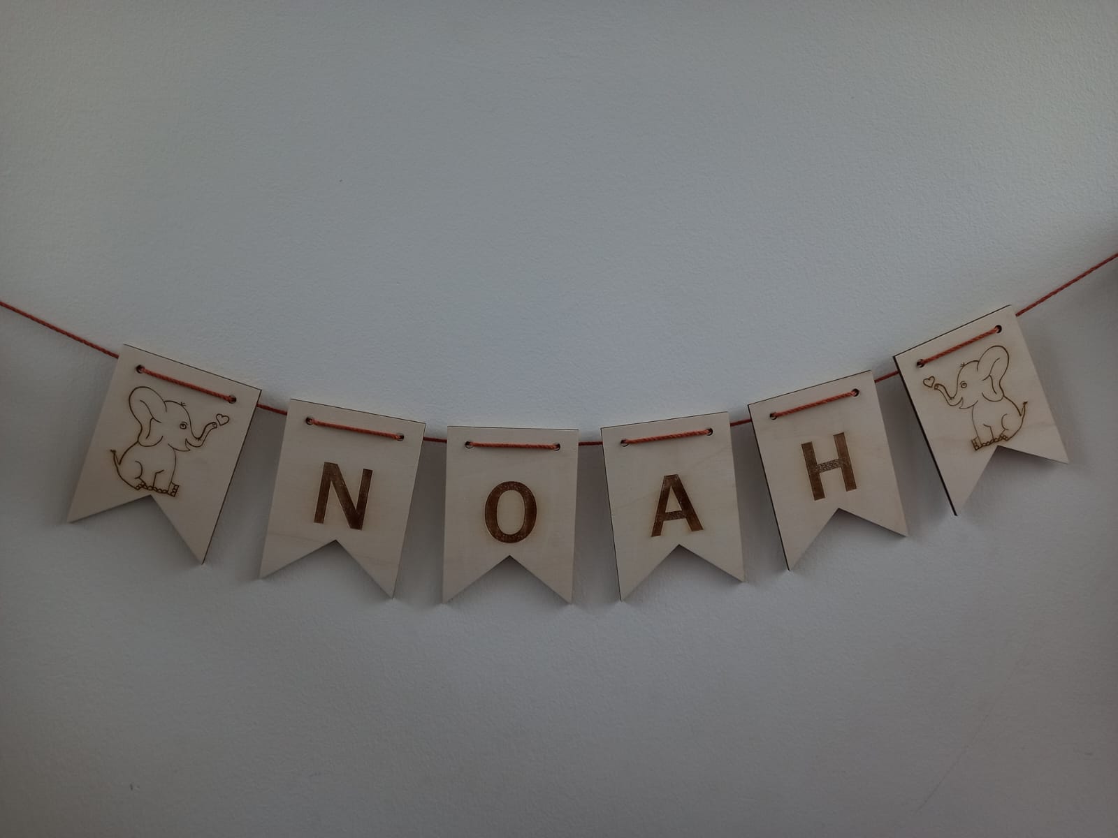 Breng sfeer in huis met deze prachtige houten vlaggenlijn! Personaliseer de vlaggetjes met een naam en kies een van de figuurtjes. Krijg zo een unieke en tijdloze decoratie voor een verjaardag, babykamer, feest of voor juf of meester.